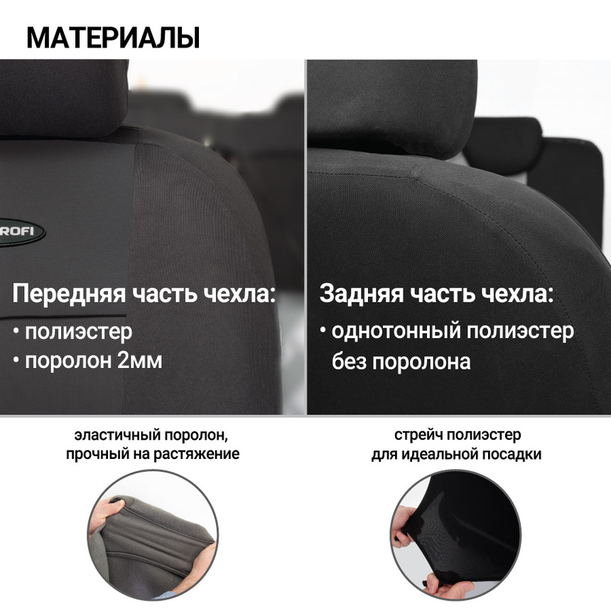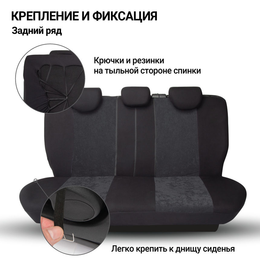 - Универсальные авточехлы на сидения из алькантары и текстиля.